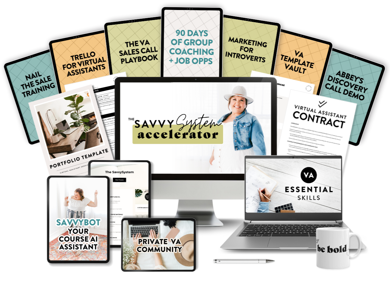 The SavvySystem: Our signature program that walks you step-by-step through launching your VA business from scratch - from choosing your services to signing your first client.